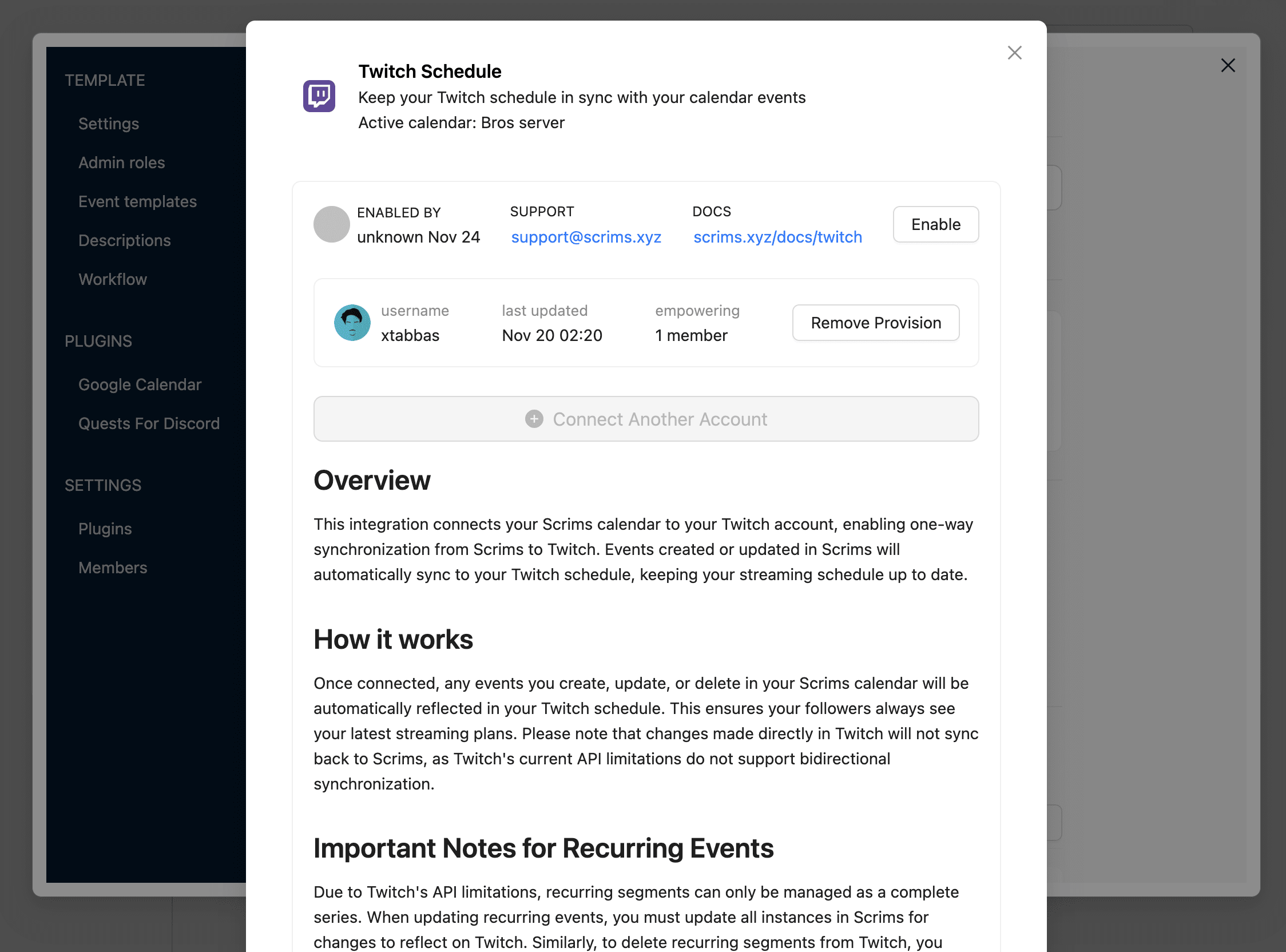 - Users can link a Twitch schedule directly while creating or editing an event.