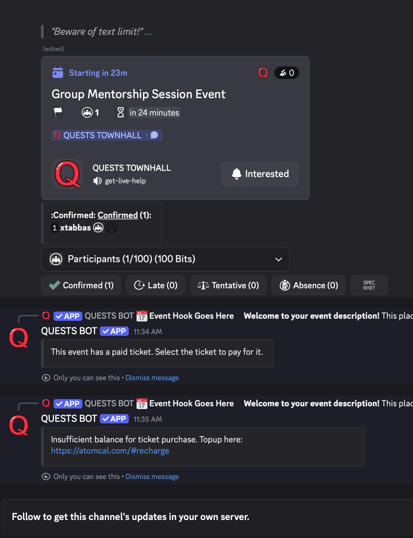 Atomcal supports paid events directly in Discord, allowing hosts to sell tickets and earn money without any extra effort π