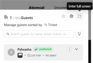 - Next to the search bar, there is a filter icon that allows the admin to view ticket holders based on their status for example, all confirmed guests.