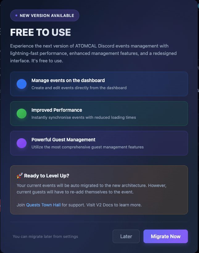 On clicking the migrate button a quick popup will appear, giving you a short overview of what’s new — like faster, smoother experience and a refreshed design.