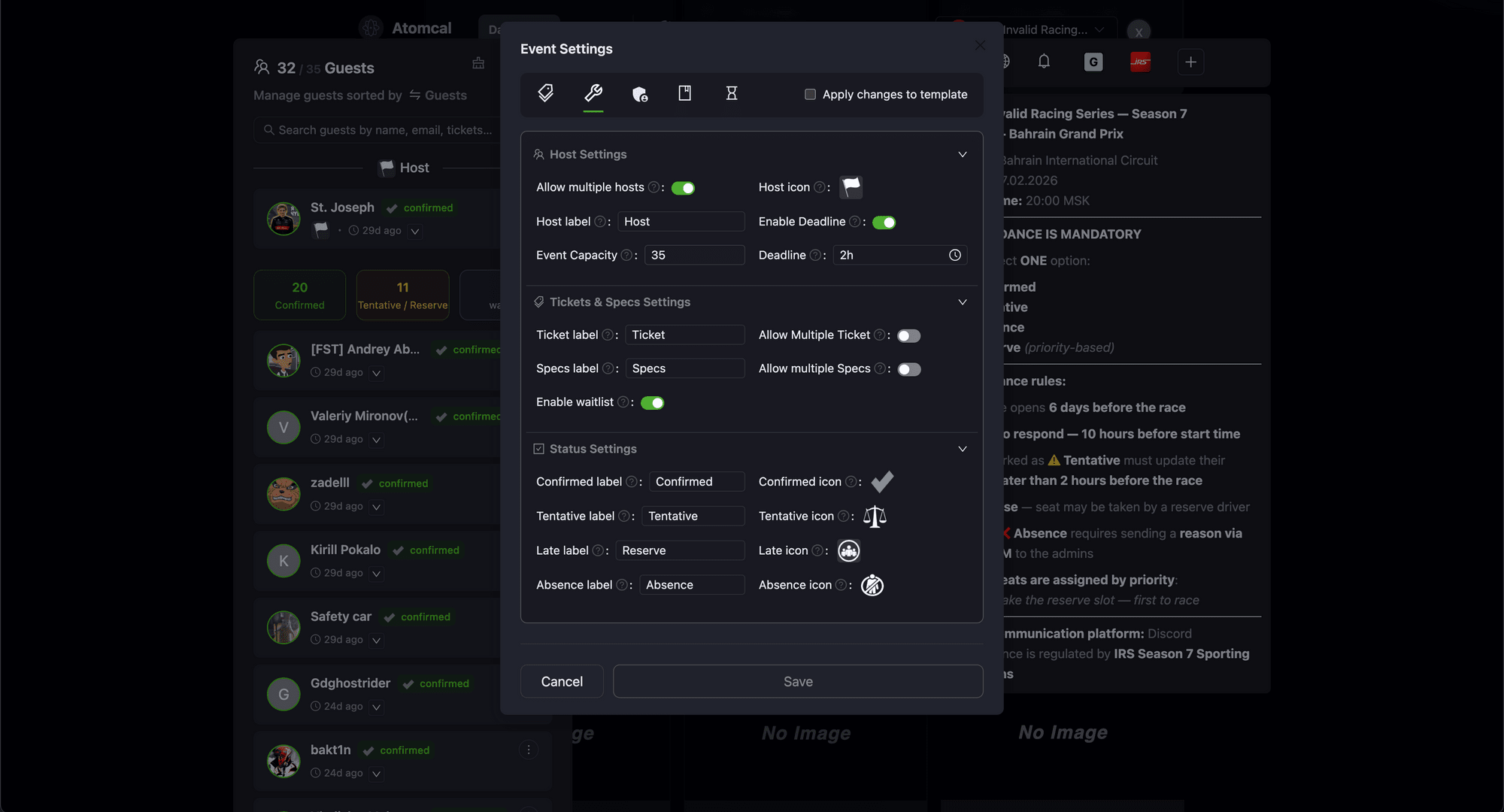 While Invalid Racing Series server owners are utilizing Atomcal powerful features like custom status and waitlists, they aren't fully utlizing what is possible with Atomcal for full automation that reduce admin work to zero.